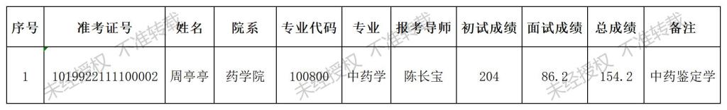 长春中医药大学2022年药学院中药学(中药鉴定学)专业全日制博士研究生复试成绩公示