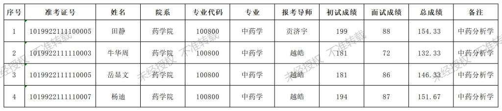 长春中医药大学2022年药学院中药学(中药分析学)专业全日制博士研究生第一轮复试成绩公示