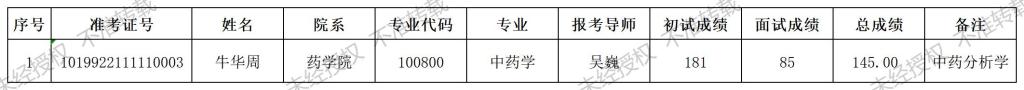长春中医药大学2022年药学院中药学(中药分析学)专业全日制博士研究生第二轮复试成绩公示