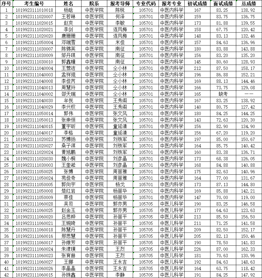 长春中医药大学2023年中医学院博士研究生入学考试部分专业第一轮复试成绩公示(一)