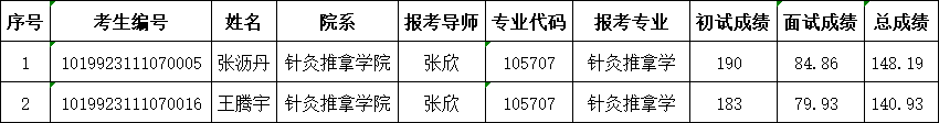 长春中医药大学2023年针灸推拿学院博士研究生入学考试复试成绩公示(第二轮)